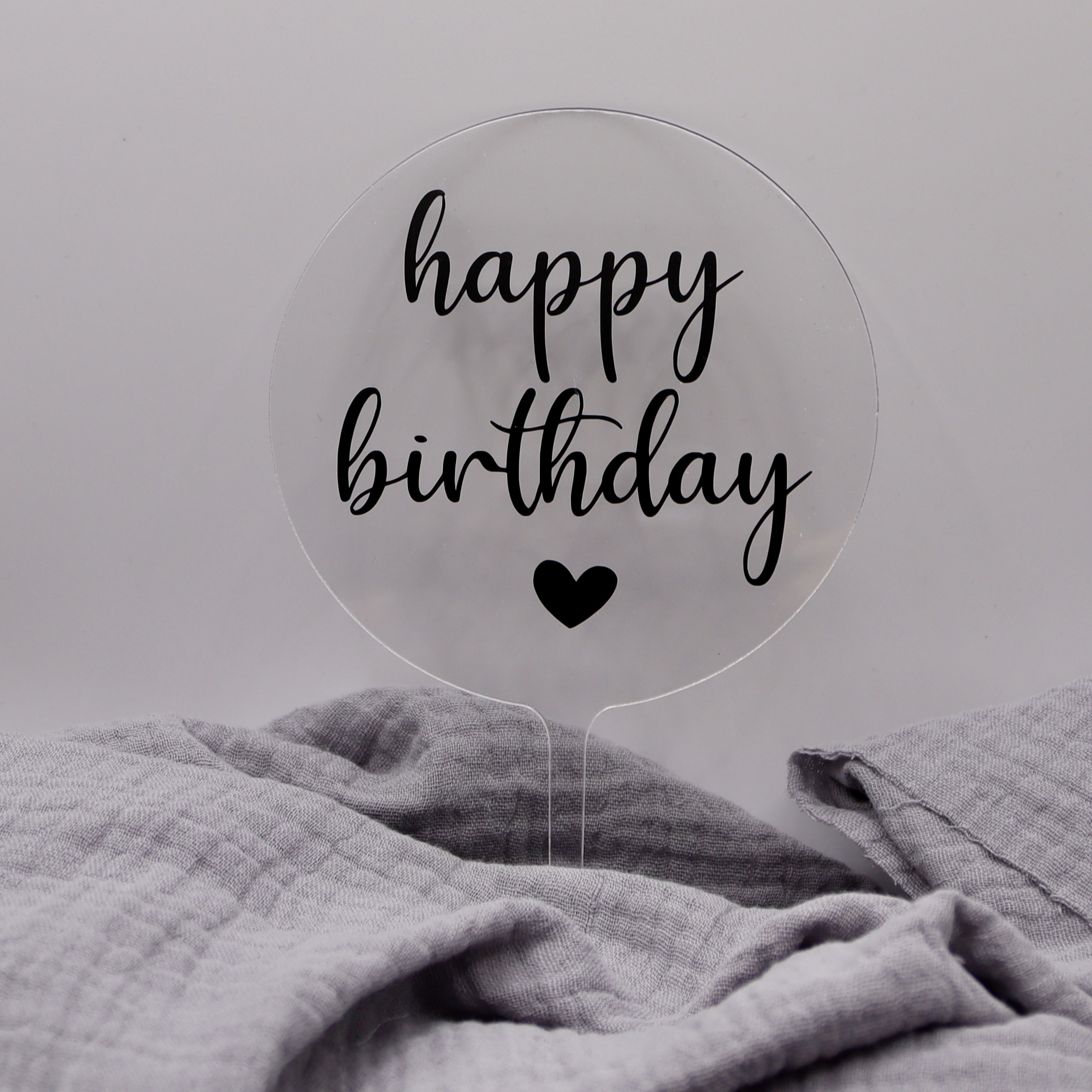 Mach deine Geburtstagstorte zu etwas ganz Besonderem – mit diesem liebevoll gestalteten Cake Topper aus transparentem Acryl.