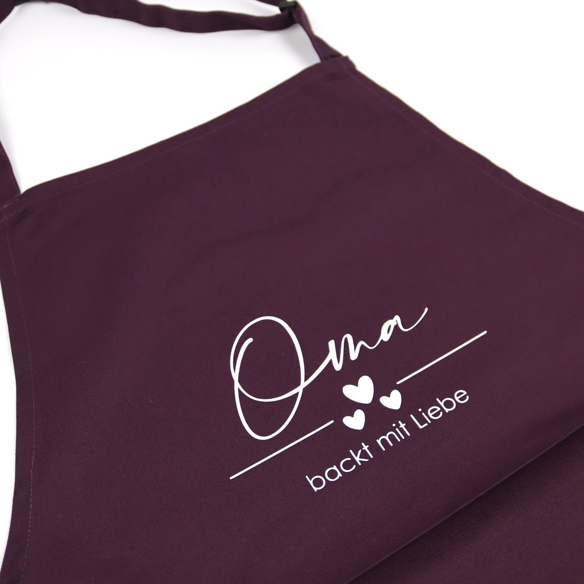 Mit der liebevoll gestalteten Schürze „Oma backt mit Liebe“ wird das Backen noch schöner! Diese charmante Schürze ist das perfekte Geschenk für jede Oma, die mit Herz und Hingabe köstliche Kuchen, Kekse und Leckereien zaubert.